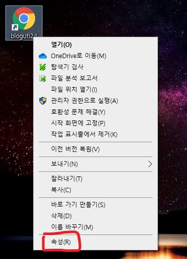바탕하면에 크롬 바로가기를 하나 생성하고, 이름을 blogutil24로 변경해 줍니다.