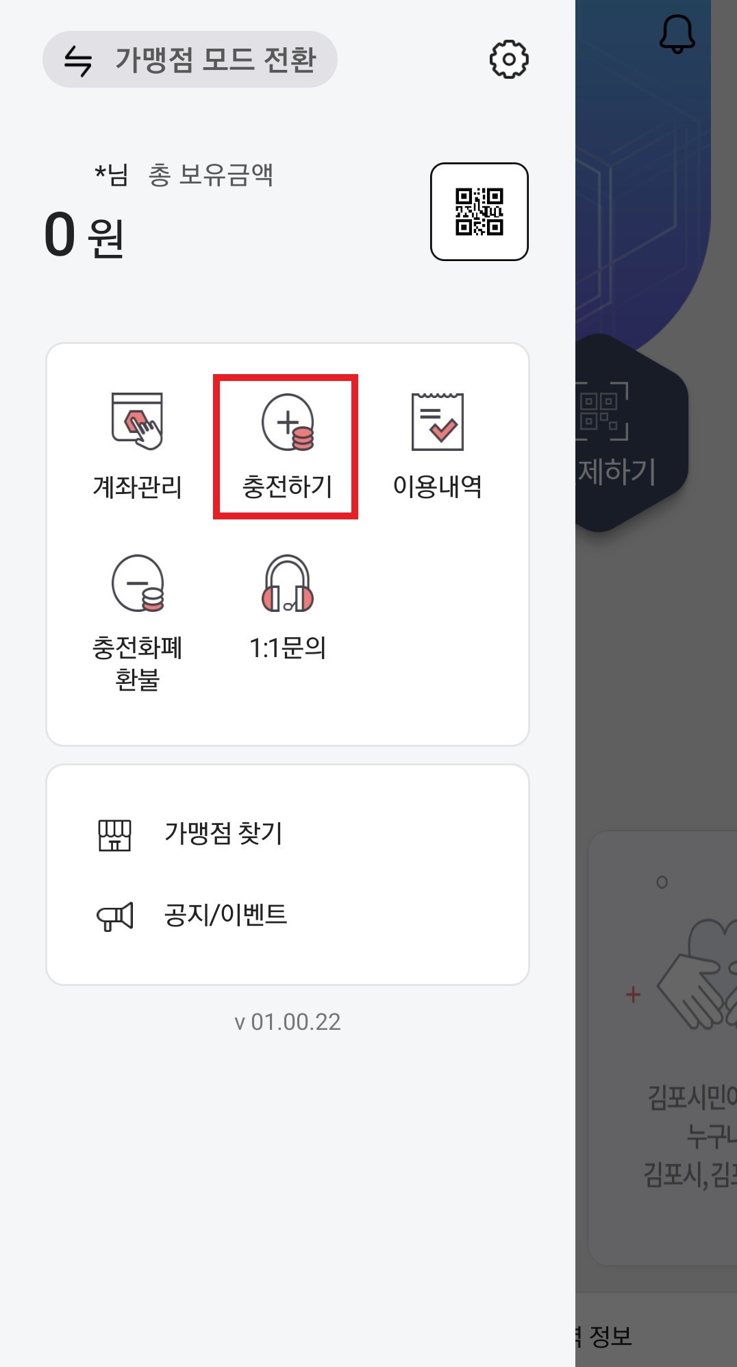 김포페이는 QR코드와 카드로 결제할 수 있습니다.