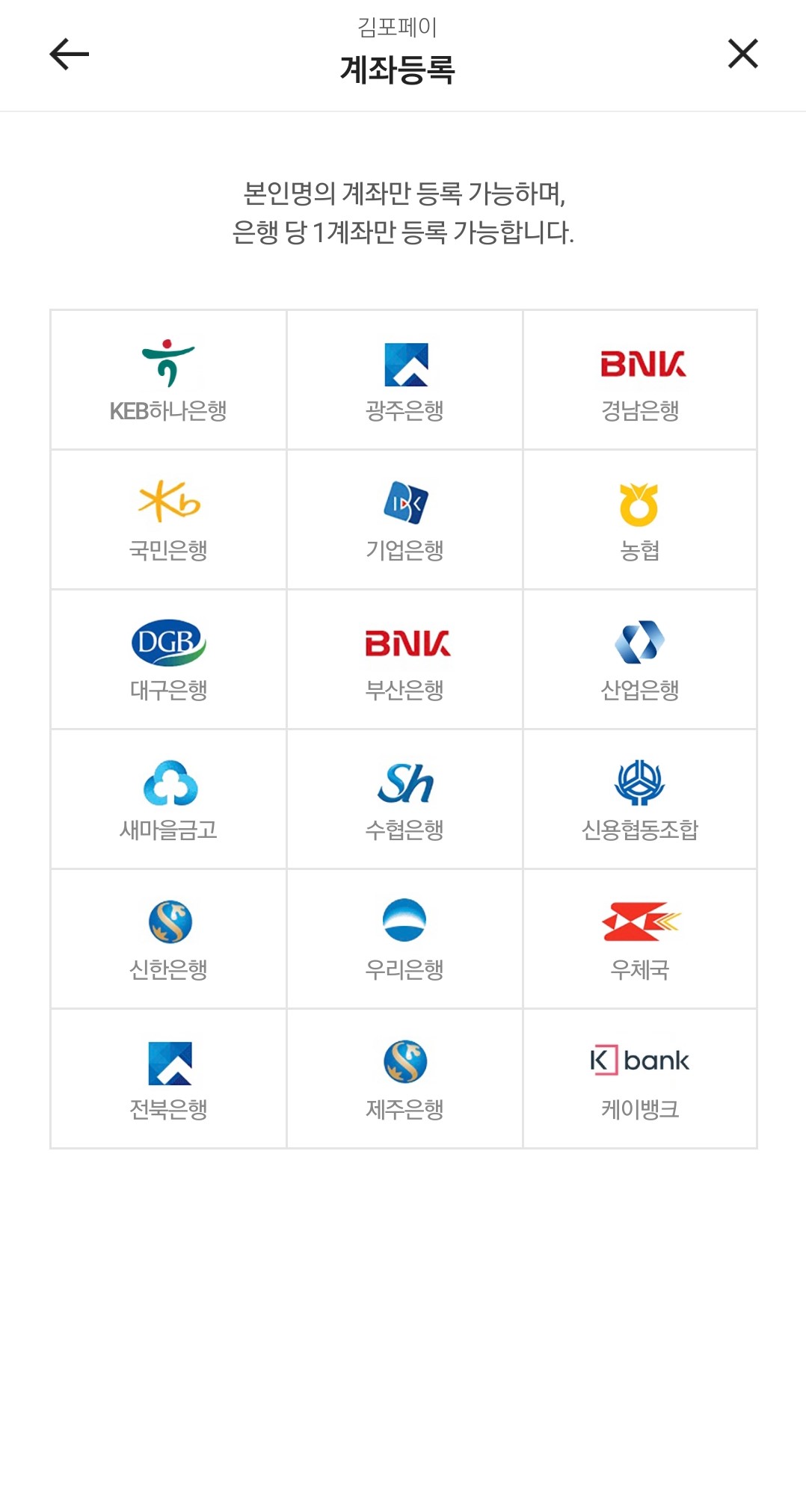 공주페이, 김포페이, 울산페이, 익산多e로움, 칠곡사랑카드 중 김포페이 선택